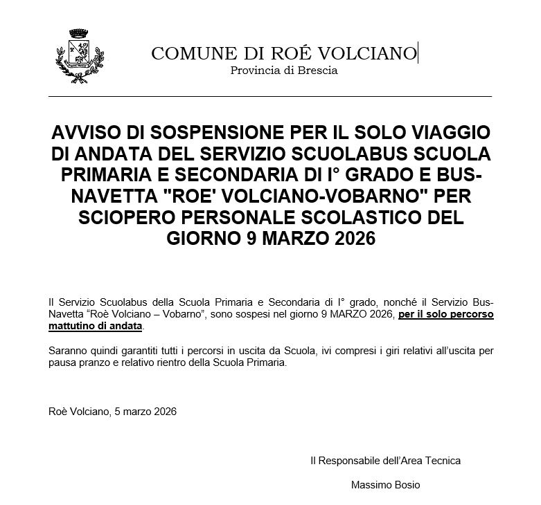 Il livello di allerta per ogni rischio è riferito all'intera zona omogenea in cui ricade il Comune di Roè Volciano.